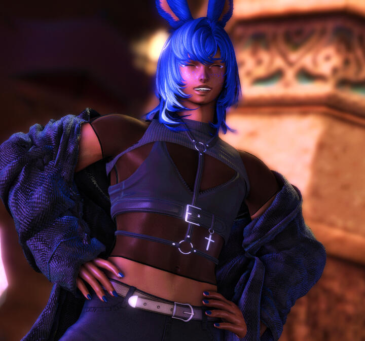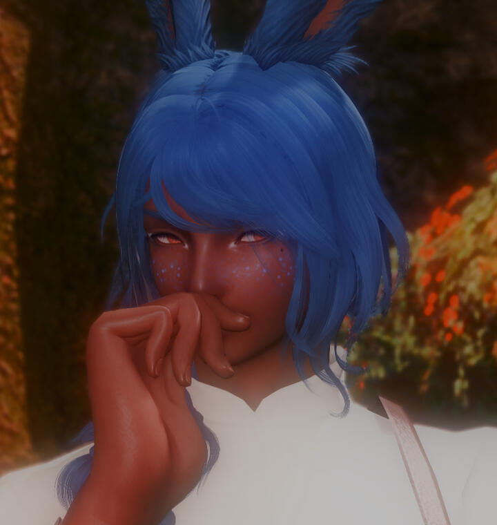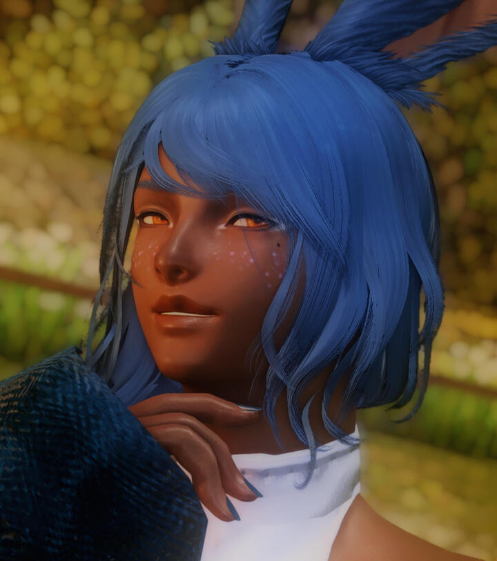 Hello there! I’m Hunk, a 29 year old, black, nonbinary sapphic who’s gradually getting back into RP. I’m very new to the FFXIV RP scene specifically and so am doing my best to learn and observe and adjust.If you'd like to RP, feel free to send me a DM on Bluesky, a Tell in FFXIV, or walk up and talk if you find me at a venue!